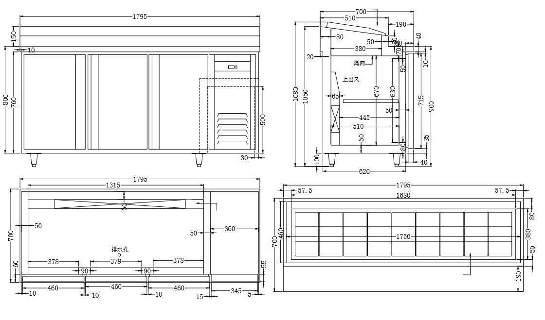 Dimensions Extérieures (LxPxH) mm | 1795 × 700 × 1080 |